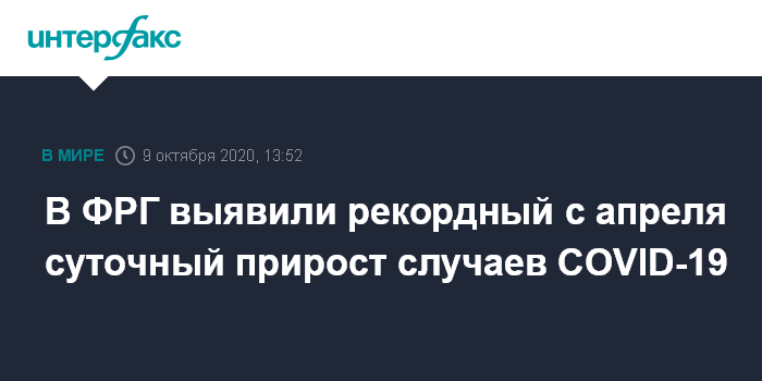 Москва. 9 октября. INTERFAX.RU - В Германии зафиксирован рекордный с апреля ежесуточный прирост случаев заражения COVID-19 - выявлено 4516 заболевших, сообщают западные СМИ.