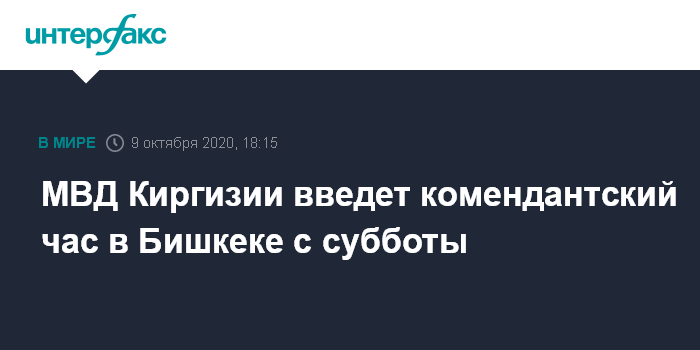 В МВД после этого сообщили, что ЧП введут в столице "с 10 октября в целях скорейшей стабилизации общественно-политической ситуации, наведения общественного порядка". По данным ведомства, комендант еще не принял решение о введении комендантского часа или о запрете на въезд в Бишкек.