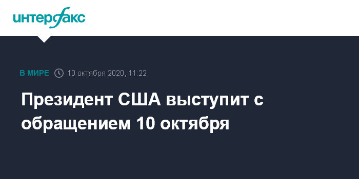 Президент США выступит с обращением 10 октября