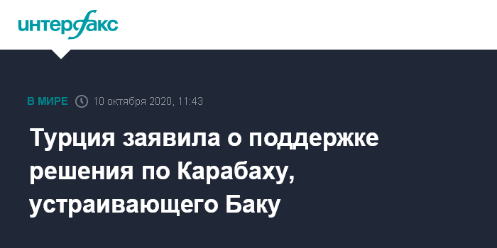 Турция заявила о поддержке решения по Карабаху, устраивающего Баку