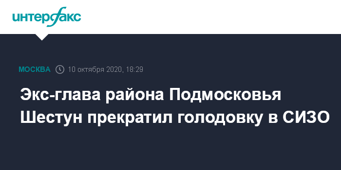 Москва. 10 октября. INTERFAX.RU - Бывший глава Серпуховского района Московской области Александр Шестун, обвиняемый в мошенничестве, прекратил голодовку, сообщил "Интерфаксу" секретарь столичной Общественной наблюдательной комиссии (ОНК) Алексей Мельников.