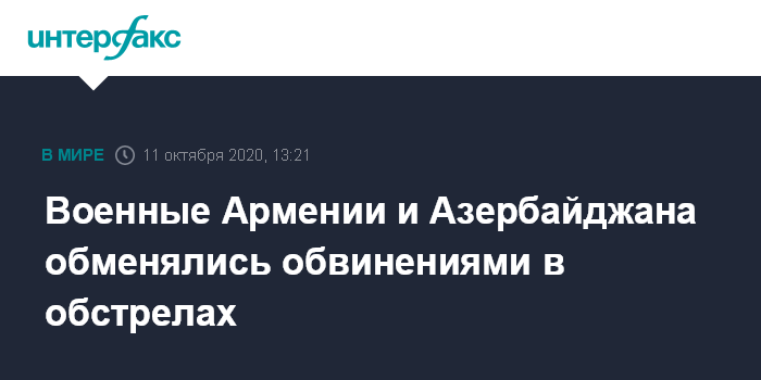 Ранее на переговорах в Москве с участием министров иностранных дел Азербайджана, Армении и России была достигнута договоренность об объявлении режима прекращения огня в Нагорном Карабахе с полудня 10 октября. Армения и Азербайджан уже не раз обвинили друг друга в нарушении перемирия.