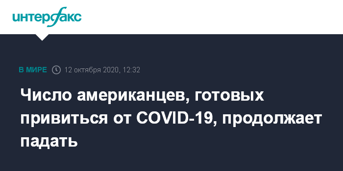 Москва. 12 октября. INTERFAX.RU - Число американцев, готовых сделать себе прививку от коронавируса COVID-19 в случае появления сейчас вакцины, продолжает сокращаться, свидетельствуют результаты опроса социологической организации Gallup.