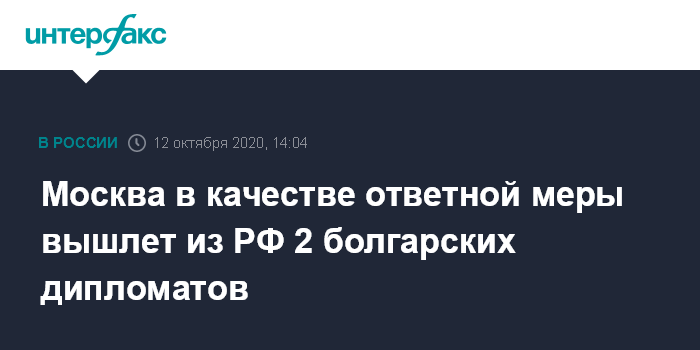 Москва в качестве ответной меры вышлет из РФ 2 болгарских дипломатов