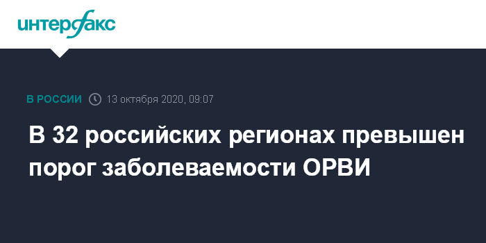 Москва. 13 октября. INTERFAX.RU - В 32 субъектах РФ превышены пороги по заболеваемости ОРВИ, ситуация находится под контролем Роспотребнадзора, сообщает ведомство.