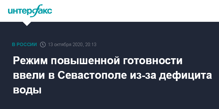 Москва. 13 октября. INTERFAX.RU - Власти Севастополя ввели режим повышенной готовности из-за сокращения запасов питьевой воды, сообщили в пресс-службе правительства города журналистам во вторник.