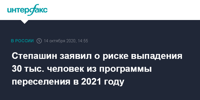 Степашин заявил о риске выпадения 30 тыс. человек из программы переселения в 2021 году