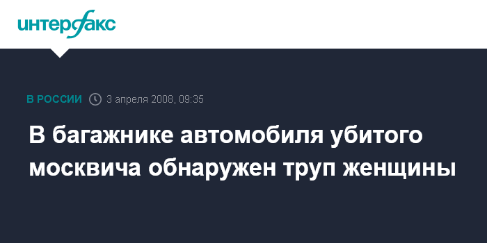 В багажнике автомобиля убитого москвича обнаружен труп женщины