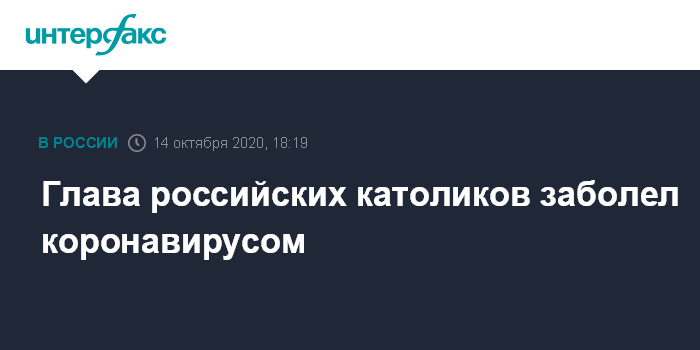 Москва. 14 октября. INTERFAX.RU - Председатель Конференции католических епископов России архиепископ Павел Пецци сообщил, что заразился коронавирусом.
