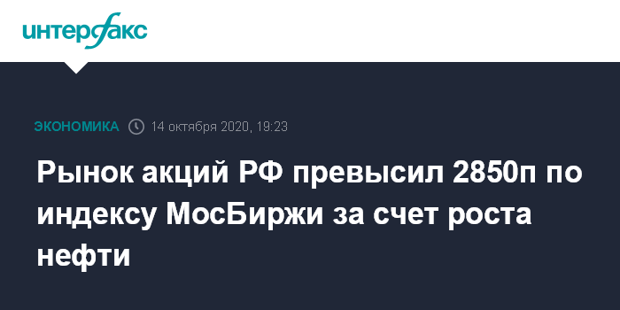 Рынок акций РФ превысил 2850п по индексу МосБиржи за счет роста нефти