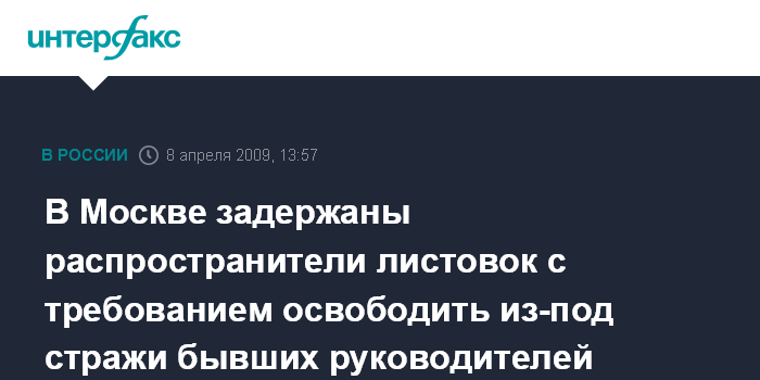 В Москве задержаны распространители листовок с требованием освободить из-под стражи бывших руководителей "ЮКОСа"