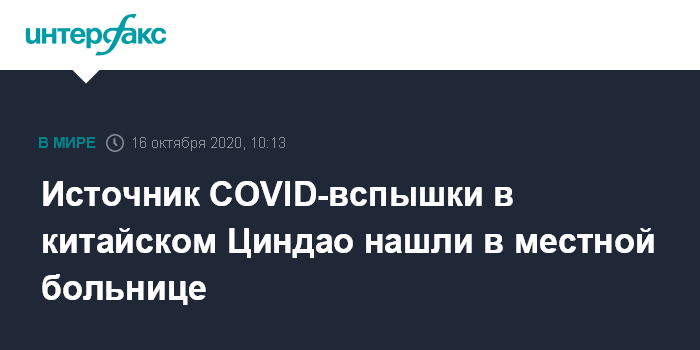 После длинных выходных по случаю Дня образования КНР и Праздника середины осени в Циндао обнаружили три бессимптомных случая заражения коронавирусом COVID-19. Поэтому власти решили протестировать все население города, в котором живет около 11 млн человек, и уже собрали более 10 миллионов анализов, но пока не все проверили. Подтвердился коронавирус только у 9 человек. Власти планируют завершить тестирование к вечеру пятницы, 16 октября.