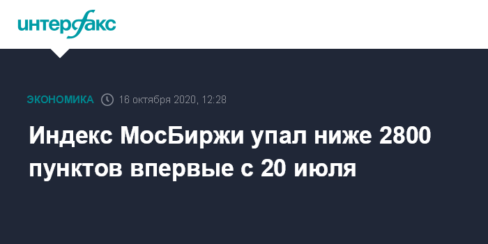 Индекс МосБиржи упал ниже 2800 пунктов впервые с 20 июля