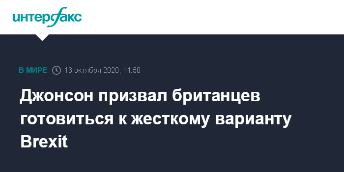 "Поскольку через 10 недель, 1 января, завершится переходный период, я должен дать оценку тому, что нас ждет. Учитывая то, что ЕС в последние месяцы, в основном, отказывался от по-настоящему серьезных переговоров..., я пришел к выводу, что к 1 января мы, скорее пойдем по "австралийскому" сценарию", - сказал Джонсон в телеобращении.