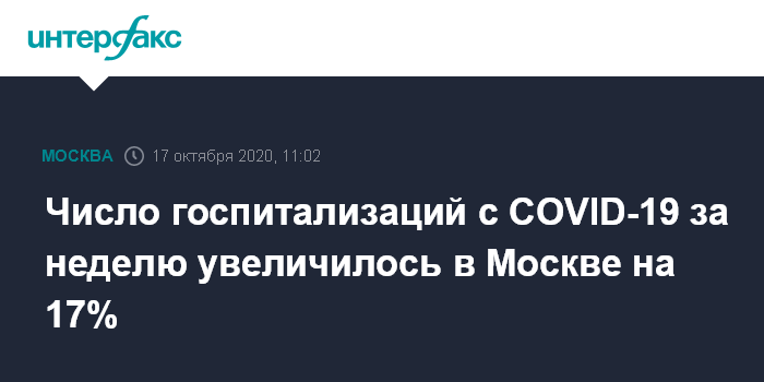 Москва. 17 октября. INTERFAX.RU - За сутки в столице госпитализировали почти 1,3 тыс. человек с COVID-19, сообщили "Интерфаксу" в оперштабе по контролю за коронавирусом в субботу.