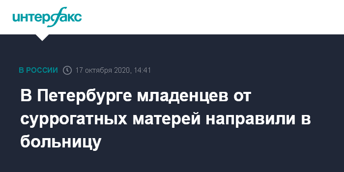 Москва. 17 октября. INTERFAX.RU - Органы опеки Калининского района Санкт-Петербурга госпитализировали семидневного младенца, рожденного суррогатной матерью, сообщили журналистам в субботу в аппарате детского омбудсмена Петербурга Анны Митяниной.