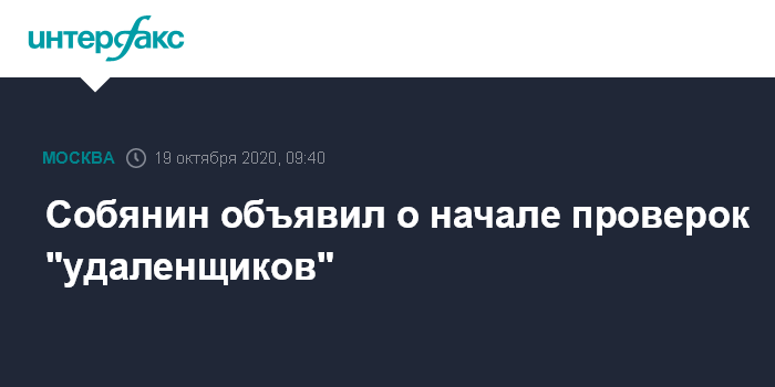 Москва. 19 октября. INTERFAX.RU - В Москве с 19 октября власти начнут проверять, как организации выполняют требование перевести не менее 30% сотрудников на удаленку, сообщил в блоге мэр города Сергей Собянин.