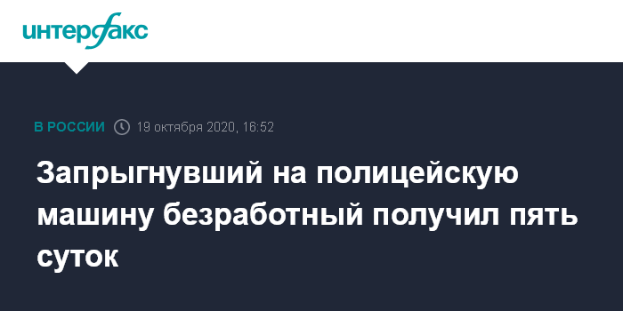Запрыгнувший на полицейскую машину безработный получил пять суток