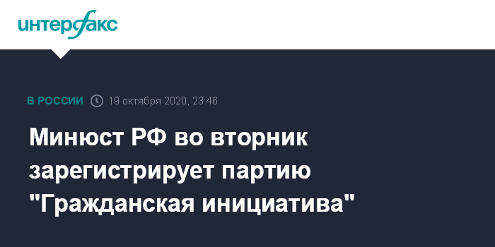 Минюст РФ во вторник зарегистрирует партию "Гражданская инициатива"
