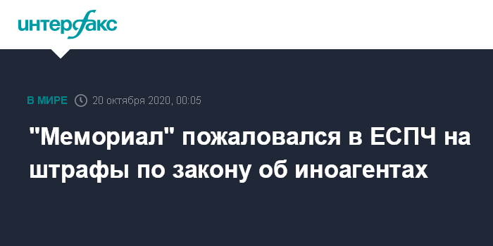 Москва. 20 октября. INTERFAX.RU - Правозащитный центр "Мемориал" обратился в Европейский суд по правам человека (ЕСПЧ) в связи с выписанными двум его организациям штрафами по закону об иноагентах.