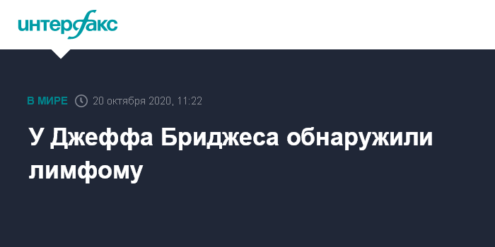 Москва. 20 октября. INTERFAX.RU - Американский актер Джефф Бриджес сообщил, что у него диагностировано онкологическое заболевание - лимфома.
