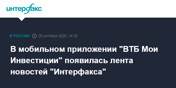 В мобильном приложении "ВТБ Мои Инвестиции" появилась лента новостей "Интерфакса"