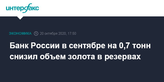 Банк России в сентябре на 0,7 тонн снизил объем золота в резервах