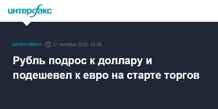 Москва. 21 октября. INTERFAX.RU - Доллар слабеет, евро укрепляется на "Московской бирже" в среду утром, рубль мало меняется к бивалютной корзине в условиях разнонаправленной динамики в основных парах.
