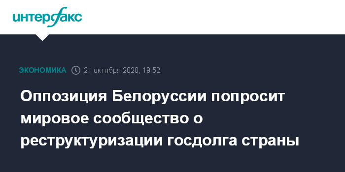 Оппозиция Белоруссии попросит мировое сообщество о реструктуризации госдолга страны