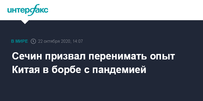 Сечин призвал перенимать опыт Китая в борбе с пандемией