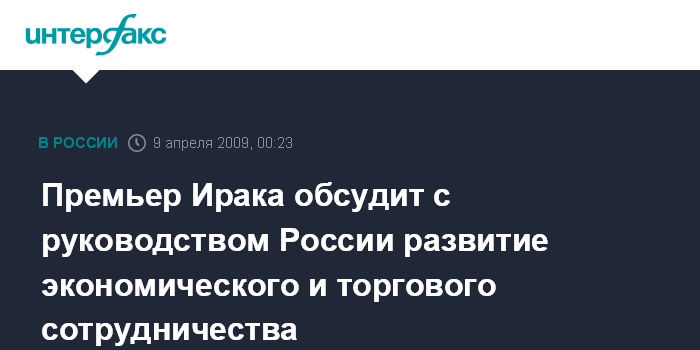 В свою очередь, по информации источников в иракском МИДе, в повестке дня предстоящих переговоров Н.Аль-Малики в Москве будут вопросы, связанные с судьбой контрактов, заключенных российскими компаниями еще при режиме Саддама Хусейна, а также связанные с иракским долгом России.
