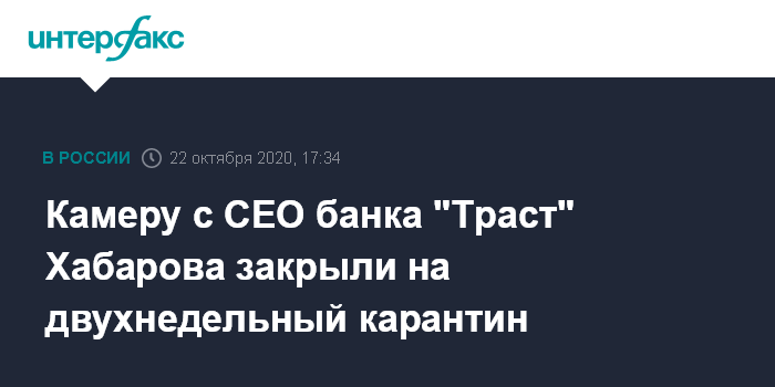 Камеру с CEO банка "Траст" Хабарова закрыли на двухнедельный карантин