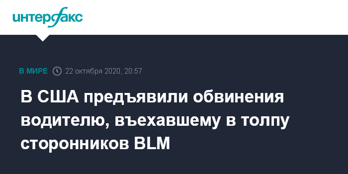 Москва. 22 октября. INTERFAX.RU - В американском штате Миннесота прокуратура предъявила обвинения водителю грузовика Богдану Вечирко, который въехал в толпу протестующих против расовой дискриминации под лозунгом Black Lives Matter, сообщает газета Star Tribune.