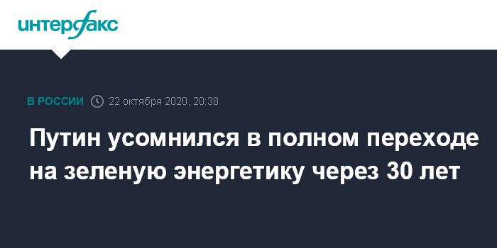 Путин усомнился в полном переходе на зеленую энергетику через 30 лет