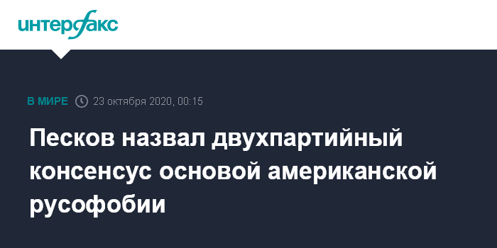 Песков назвал двухпартийный консенсус основой американской русофобии
