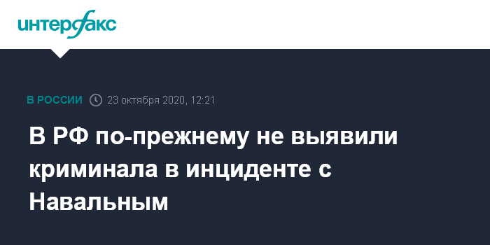 Москва. 23 октября. INTERFAX.RU - Западно-Сибирское следственное управление на транспорте СКР в ответ на запрос депутата Законодательного собрания Санкт-Петербурга Бориса Вишневского указало, что органы МВД проводят проверку по факту отравления Алексея Навального. Источники "Интерфакса" заявляют, что криминала в ситуации с оппозиционным политиком по-прежнему не выявлено.