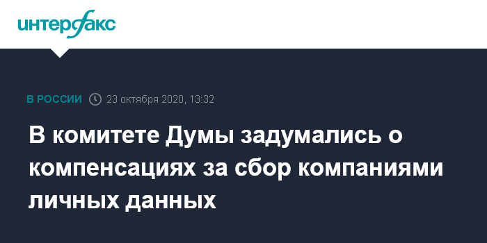 В комитете Думы задумались о компенсациях за сбор компаниями личных данных