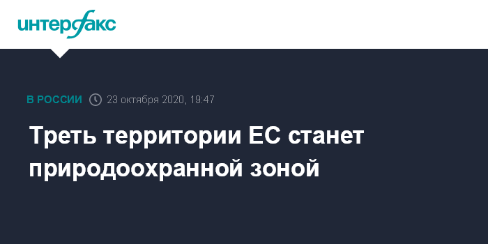 Москва. 23 октября. INTERFAX.RU - Европейский союз выделит треть своей территории и треть морской акватории для создания сети охраняемых экологических пространств и включит борьбу с утратой биоразнообразия в свое законодательство.