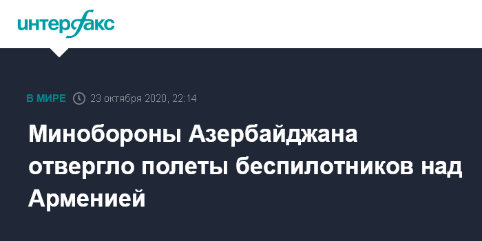 Москва. 23 октября. INTERFAX.RU - Министерство обороны Азербайджана опровергло информацию армянской стороны о сбитом и упавшем на территорию Армении азербайджанском беспилотнике.