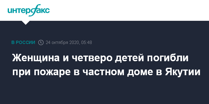 Женщина и четверо детей погибли при пожаре в частном доме в Якутии