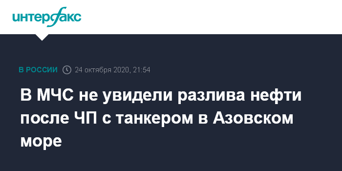 Москва. 24 октября. INTERFAX.RU - Разлива нефти в районе бедствия танкера в Азовском море нет, сообщил журналистам в субботу руководитель пресс-службы ГУ МЧС России по Краснодарскому краю Никита Гавриляк.