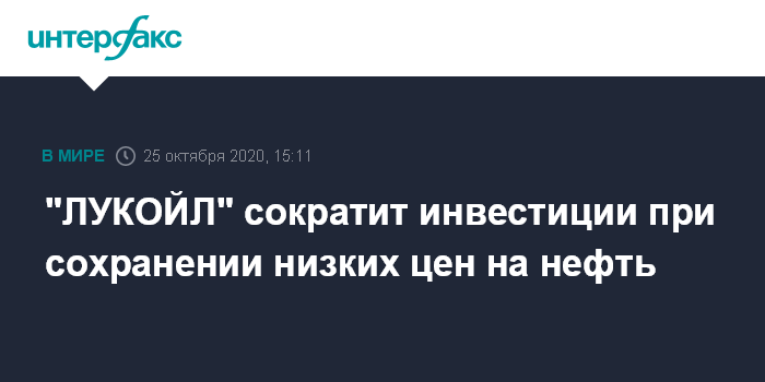 Москва. 25 октября. INTERFAX.RU - Сохранение низких цен на нефть заставит НК "ЛУКОЙЛ" вновь сокращать инвестиции.