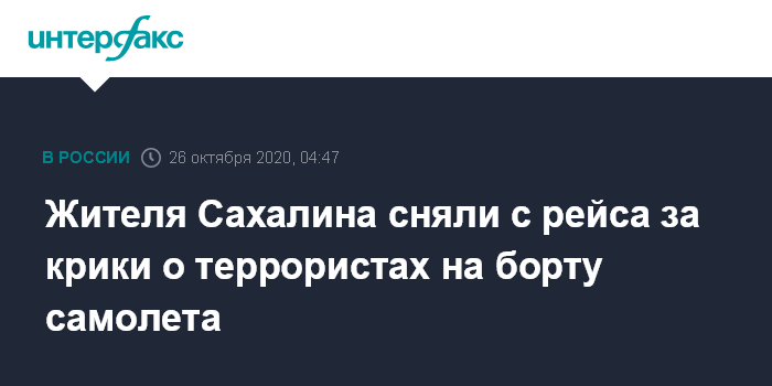 Москва. 26 октября. INTERFAX.RU - Жителя Южно-Сахалинска сняли с рейса Владивосток - Южно-Сахалинск вечером в воскресенье за дебош на борту самолета, сообщили "Интерфаксу" в пресс-службе авиакомпании "Аврора" в понедельник.