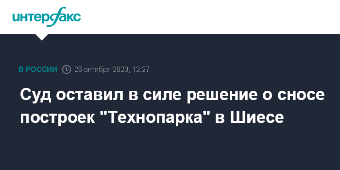 Москва. 26 октября. INTERFAX.RU - Четырнадцатый арбитражный апелляционный суд в Вологде оставил в силе решение о сносе построек ООО "Технопарк" на станции Шиес, передает корреспондент "Интерфкаса".