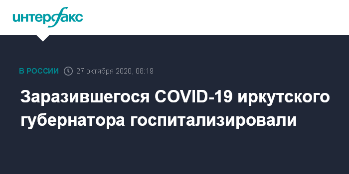 Москва. 27 октября. INTERFAX.RU - Губернатора Иркутской области Игоря Кобзева, у которого выявили коронавирусную инфекцию, госпитализировали, сообщили "Интерфаксу" во вторник в пресс-службе правительства региона.