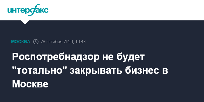 Москва. 28 октября. INTERFAX.RU - Бизнес в Москве не будет закрываться, будут проводиться "точечные" надзорные мероприятия, сообщила глава столичного управления Роспотребнадзора Елена Андреева.