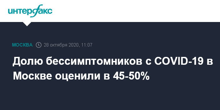 Долю бессимптомников с COVID-19 в Москве оценили в 45-50%
