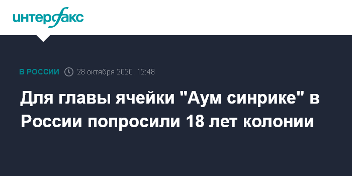 Для главы ячейки "Аум синрике" в России попросили 18 лет колонии