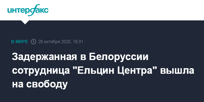 Задержанная в Белоруссии сотрудница "Ельцин Центра" вышла на свободу