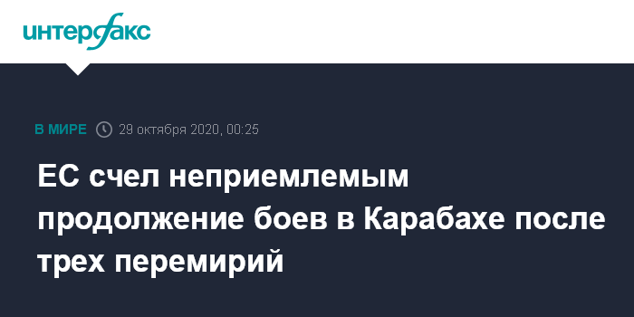 ЕС счел неприемлемым продолжение боев в Карабахе после трех перемирий